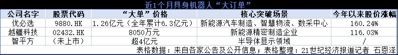 头部企业在大额订单上实现要津场景糟蹋。港股市集上,越疆科技与优必选相继斩获大单。