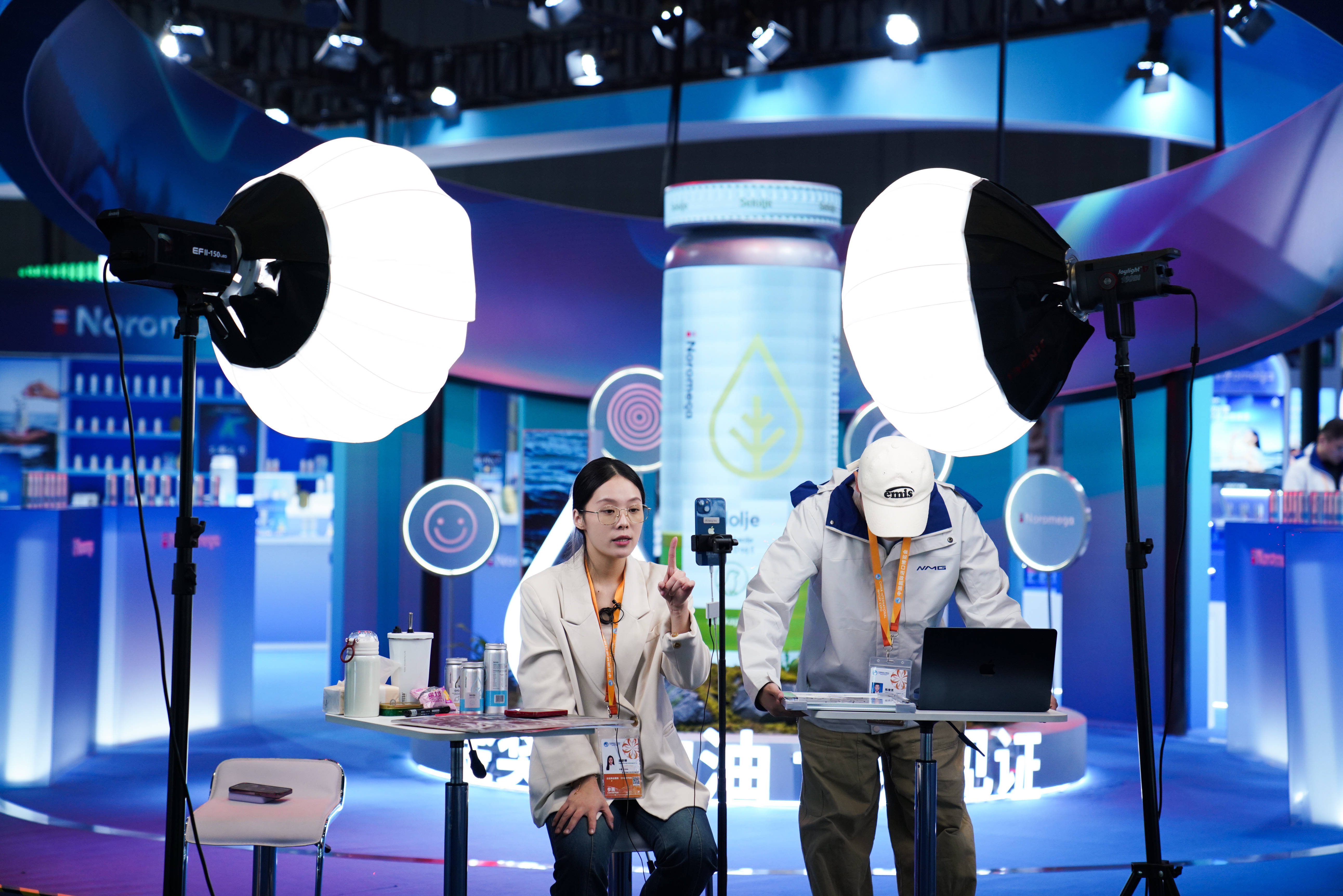 11月4日,使命主谈主员在第八届进博会医疗器械及医药保健展区直播。新华社记者樊雨晴 摄透过迟缓“长大”的进博会,一个愈加怒放自信的中国向天下走来。
