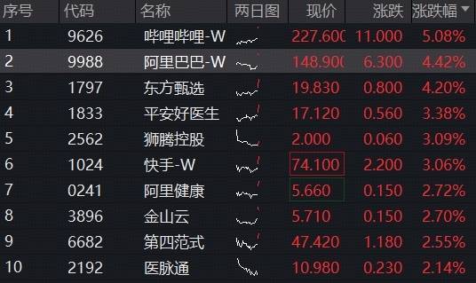 1月9日,港股早盘高开,科网龙头巨额走强,限度发稿,哔哩哔哩-W涨超5%,阿里巴巴-W涨超4%,快手-W涨超3%,小米集团-W跟涨;下降方面,好意思团-W跌超1%,腾讯控股微跌。