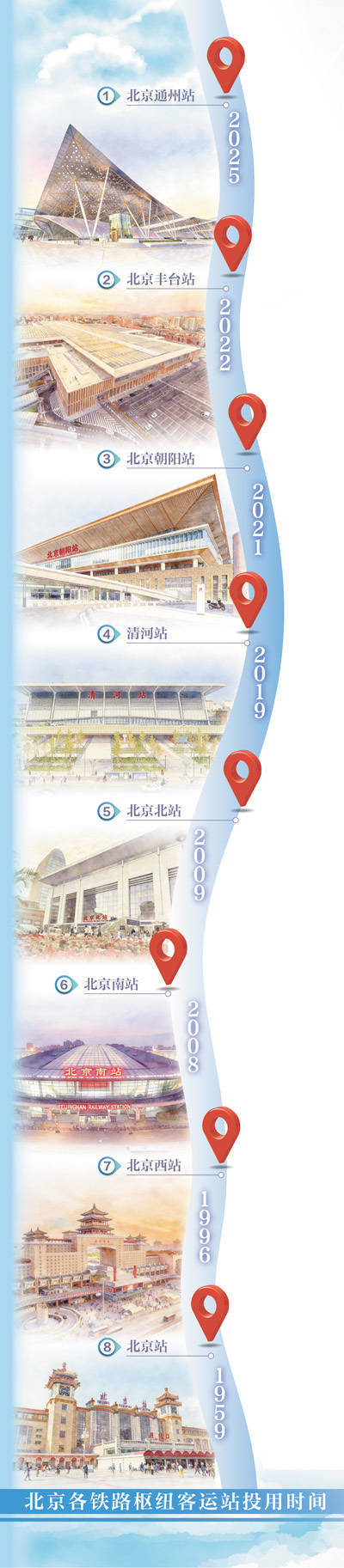 30年来,北京市从北京站、北京西站两座铁路关节客运站,发展到北京站、北京西站、北京南站、北京北站、清河站、北京向阳站、北京丰台站、北京通州站8座。如今,北京西站邃晓32个省级行政区、211个地级及以上城市,邃晓进度宇宙最初。从北京登程的列车可直达266个地级及以上城市。2025年,北京铁路游客发送量达3.9亿东说念主次。
